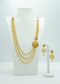 Radiate bridal elegance with this stunning designer Rani-Haar and matching big earrings, meticulously crafted in enchanting yellow gold to complete your wedding ensemble.